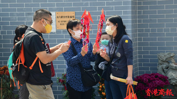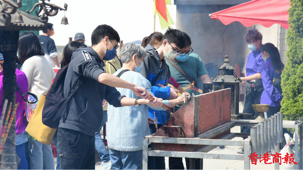 不少市民一家大小前來古廟,祈求新一年可以轉運,尤其疫情可盡快受控及結束,希望生活及本港經濟可回復正常。(攝影 崔俊良)