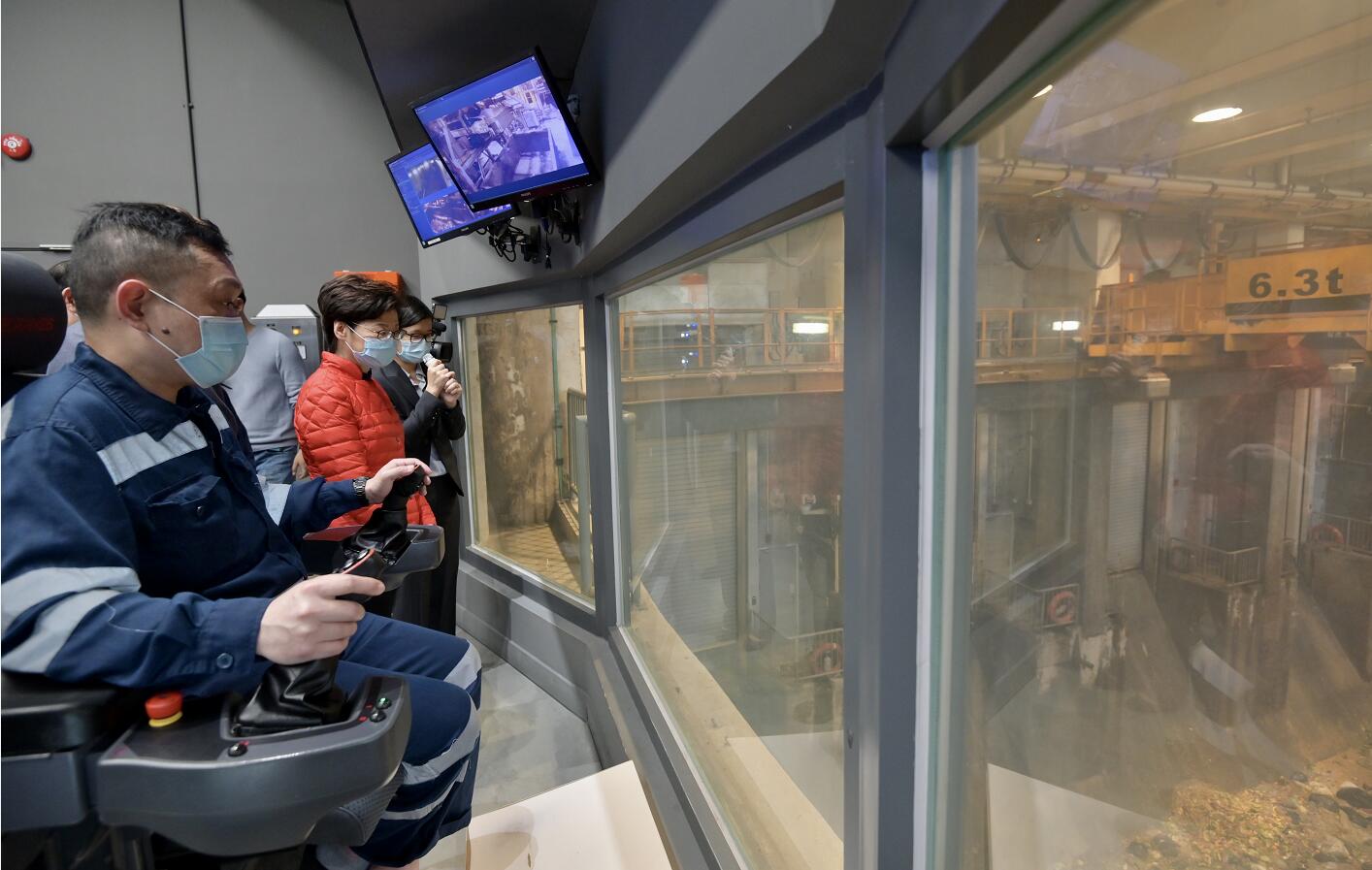 行政長官林鄭月娥今日(15日)與環境局局長黃錦星和渠務署署長彭雅妮到訪環保署的轉廢為能及回收設施,了解環境局為達至《香港資源循環藍圖2035》中「全民減廢‧資源循環‧零廢堆填」的新願景,在資源循環和分類回收方面的工作。