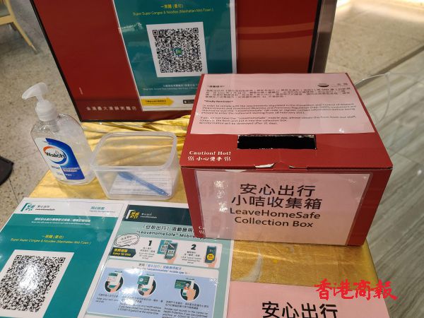 今天已見到不少食肆在門口貼有「安心出行」的二維碼,以及相關的說明。同時旁邊也放有相關的表格,以供沒有智能手機的人士填寫相關的健康資料,上面必須填寫姓名,聯絡電話,到訪時間和日期,然後放入旁邊的收集箱。