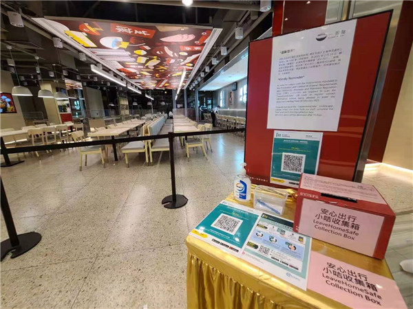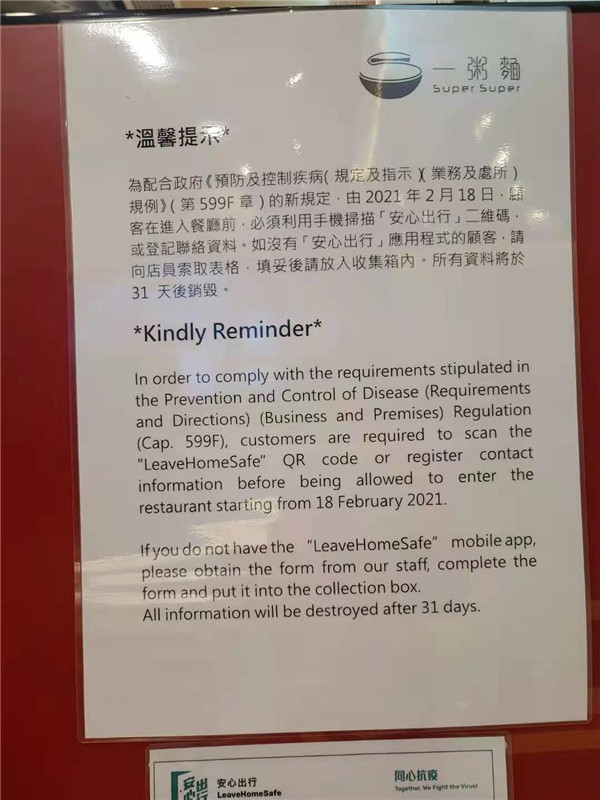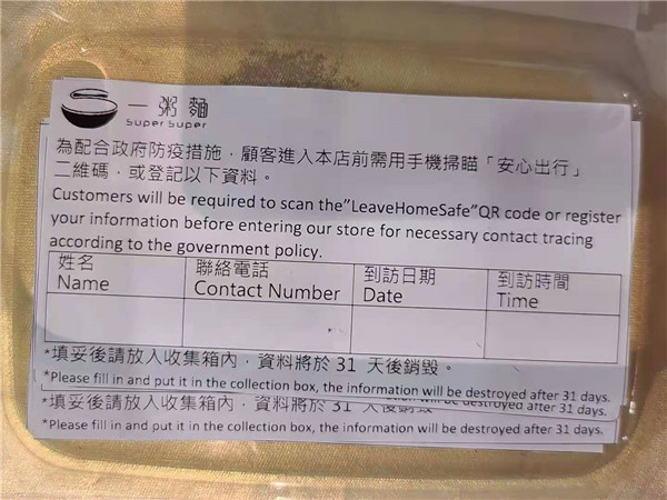 昨天已見到不少食肆在門口貼有「安心出行」的二維碼,以及相關的說明。同時旁邊也放有相關的表格,以供沒有智能手機的人士填寫相關資料,上面必須填寫姓名,聯絡電話,到訪時間和日期,然後放入旁邊的收集箱。