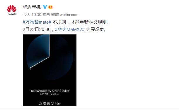 據@華為手機 微博2月18日消息,華為折疊屏手機「華為MateX2 」將於2月22日20時發布。據悉,由於台積電芯片代工被美國禁止,過去的一個季度,華為手機全球銷量大幅下滑。(配圖為華為第一代的折疊屏手機)