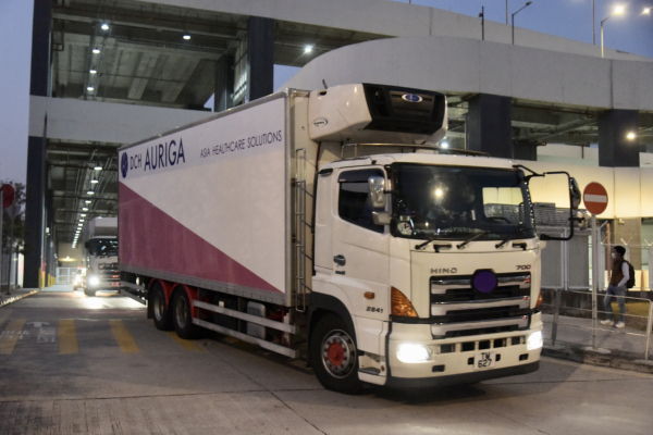 一箱箱的疫苗由警察護送組開路,送到衞生署指定位於葵涌偉倫中心的倉庫。這倉庫屬大昌行集團旗下的醫療保健品分銷商奧利佳,倉庫保安明顯加強。