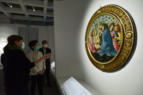 林鄭月娥參觀香港藝術館正舉行的「波提切利與他的非凡時空──烏菲茲美術館珍藏展」。