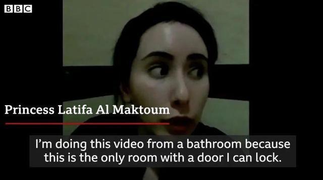 BBC於16日播出的《全景》欄目紀錄片《消失的公主》中多個視頻片段顯示,拉蒂法躲在上鎖的浴室里,用英語輕聲說道:「我是一個人質。這座別墅改建成了監獄。所有窗戶都關上了,我一扇窗也打不開。我一個人呆著,單獨囚禁,沒有醫療服務,沒有審判,沒有指控,什麼都沒有。」