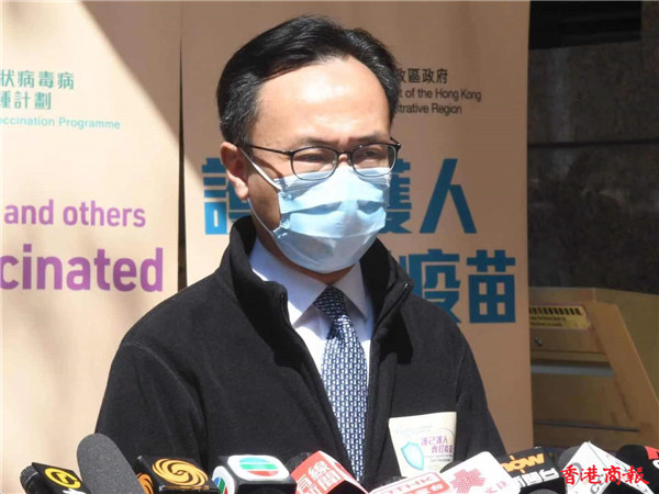 政府表示,隨着疫苗接種計劃今日起接受網上預約,社區接種中心會於開放時間內駐有一名主管醫生、一名曾受緊急護理訓練的註冊護士,以提供全面監督和應急事故管理。約200名屬優先接種組別人士昨日率先在設於香港中央圖書館展覽館的社區疫苗接種中心接種新冠疫苗,這些人士包括醫護人員、安老院舍員工、維持必要公共服務人員、跨境運輸工作人員等。警務處處長鄧炳強、海關關長鄧以海、懲教署署長胡英明、消防處處長梁偉雄、入境事務處處長區嘉宏及政府飛行服務隊總監胡偉雄機長在下午到場與同袍一同接種疫苗。