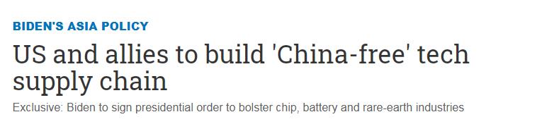 據外媒報道,美國總統拜登最快在本月底簽署一項行政命令,與日本、韓國、澳洲、中国台灣等合作,建立半導體與其他具戰略意義物資的供應鏈,加速擺脫對中國產業鏈的依賴。