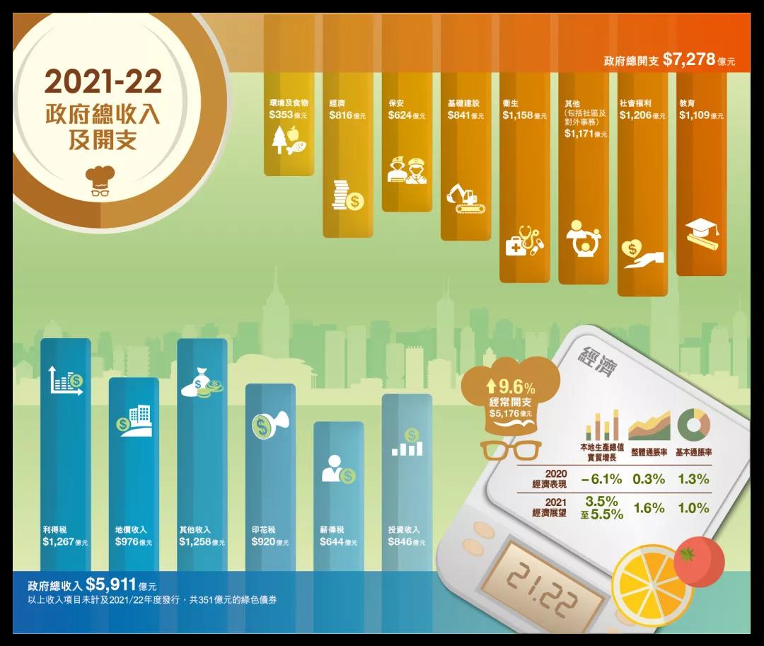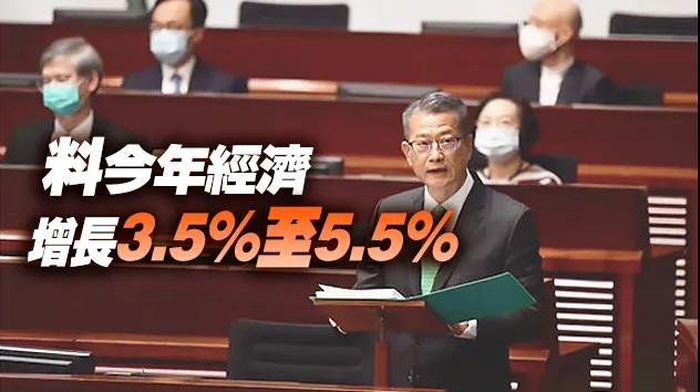回顧到去年香港經濟,陳茂波稱,香港整體經濟去年上半年大幅收縮9%,第三季稍見改善,但第四季後期至今再受疫情打擊。去年全年合計,經濟收縮6.1%,是有紀錄以來最大的年度跌幅,亦是香港首次連續兩年負增長。考慮到內外最新形勢,以及財政措施的提振作用,預測今年經濟實質增長介乎3.5%至5.5%。