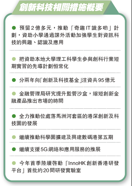 事實上,林鄭月娥自就任行政長官以來,在加大創科投入方面,一直不遺餘力。除了加強「硬件」建設,包括興建位於落馬洲的港深創新科技園、擴建數碼港及科學園園區設施外,「軟件」方面亦有着墨,包括加強對學生在資訊科技方面的培訓,及支援研發實驗室的開支。