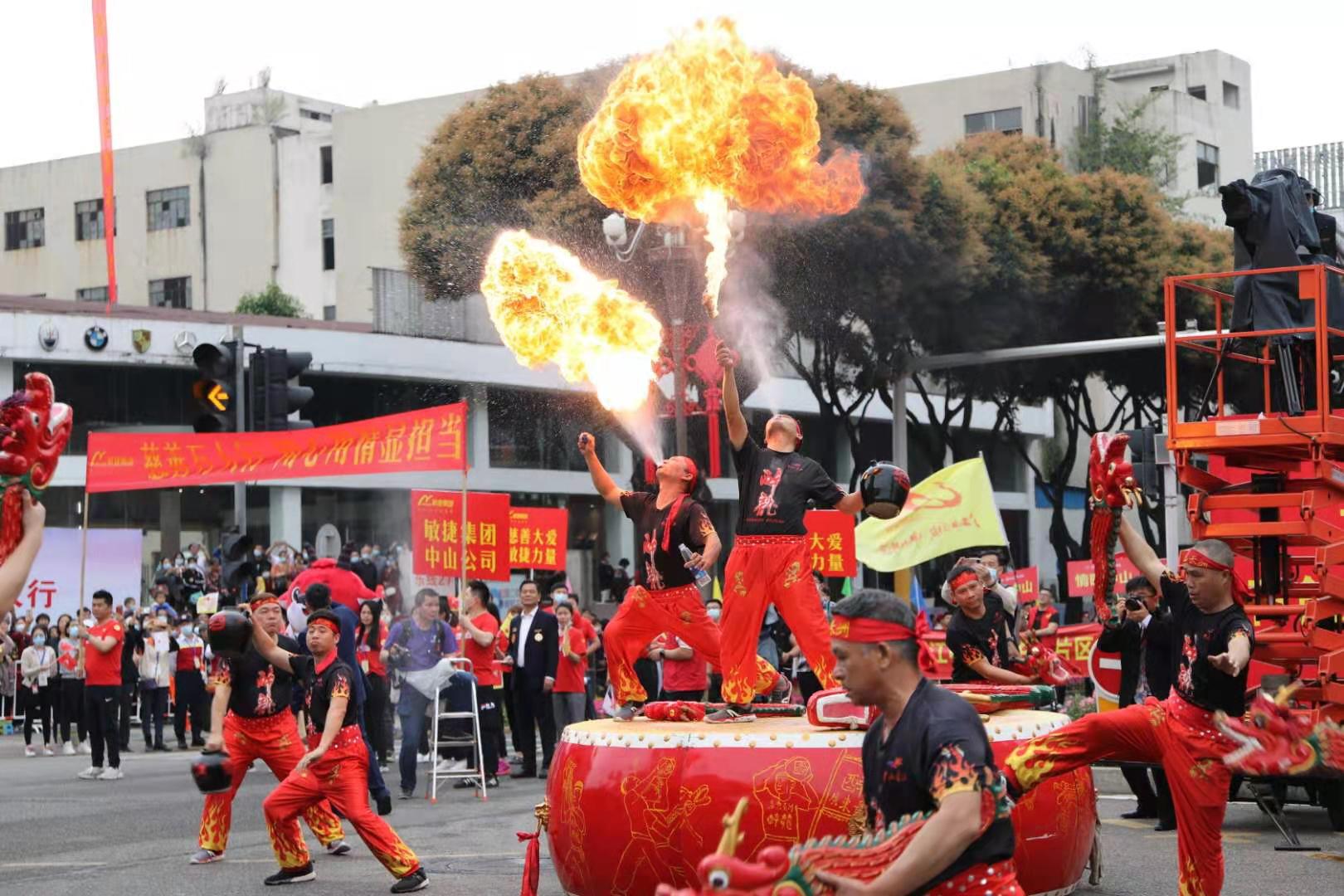 隨着賴澤華宣布中山市2021年慈善萬人行起步,2公里多長的興中道頓時沸騰起來。巡遊隊伍分為兩路,會同表演隊伍,從興中道東西兩側「雙龍出海」向市人大方向行進。「建黨100周年方隊」、「辛亥革命110周年方隊」、「粵港澳大灣區珠三角9市紅十字會方隊」、「健康衛士、抗疫先鋒方隊」、「中山好人、道德模範、十傑市民方隊」、「特色產業方隊」「脫貧攻堅方隊」、「鄉村振興方隊」……雖然每支隊伍都不超過30人,但每個人都顯得朝氣蓬勃,意氣風發。龍獅團、鶴舞隊、崖口飄色、六坊雲龍……雖然民間展演隊伍在數量上比往年少了一些,但虎虎生威的表演勁頭卻一點也不輸以前。