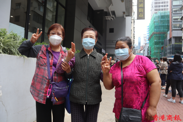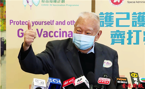 他說,打疫苗是保護自己,保護家人,更是保護香港,最好每一個人都去打。大家只要團結,就能戰勝這個病毒,一定可以戰勝的。他握握拳頭,又再指著記者們說,「希望你們每一個人都去哦,都來一次!」
