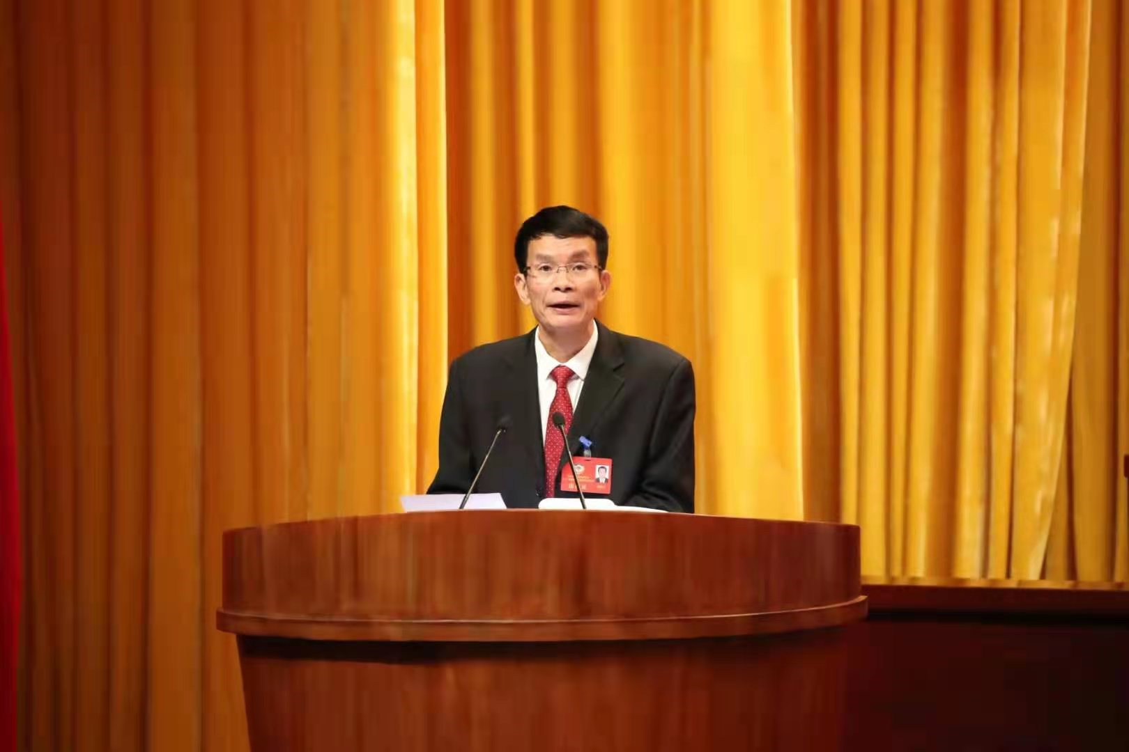 惠州市政協主席林惜文代表政協第十二屆惠州市委員會常務委員會,向大會報告工作。