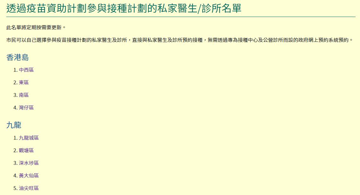 提供科興疫苗指定私家診所名單:https://www.covidvaccine.gov.hk/zh-HK/VSS