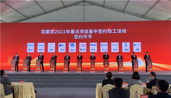 3月1日,廣州市花都區舉行2021年重點項目集中簽約及動工活動,以現場簽約、視頻連線、雲動工等方式集中展示28個項目簽約、37個投資項目動工的實況。