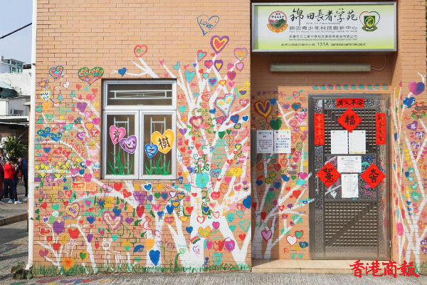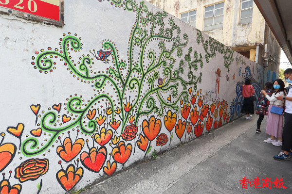 錦田壁畫村以已有逾五百年歷史的錦田吉慶圍作中心,主要集中在錦田公路兩旁,義工們在區內的橫街窄巷、老舊矮牆上,以「愛」為主題繪畫出四十多幅色彩艷麗的壁畫。壁畫運用不同的創作風格及表達方式,有些是凸顯當地的風土人情,有些以動、植物及貓、狗等做主角,亦有奇幻的創作畫風,琳琅滿目,非常精采,成為不少遊客或本地居民熱門打卡地,既可欣賞美麗的壁畫,又可感受新界圍村的風貌,一舉兩得。(攝影 馮瀚文)
