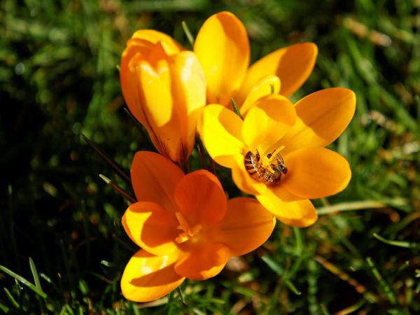 當地時間2月26日,在英國米爾頓凱恩斯,花朵紛紛盛開。蜜蜂在花瓣間穿梭。