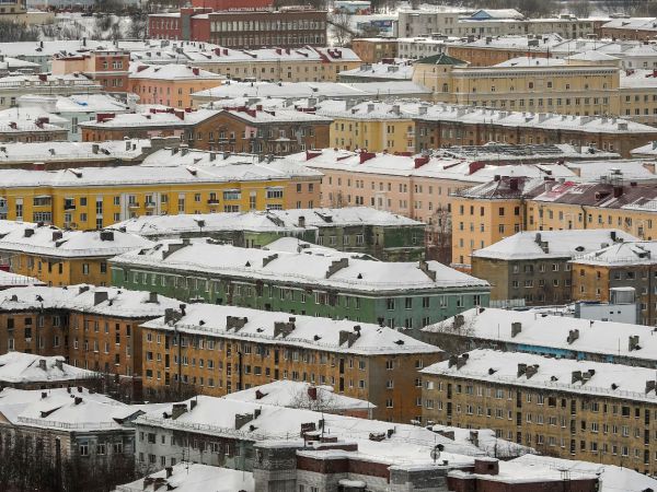 當地時間2月27日,在俄羅斯摩爾曼斯克市,白雪覆蓋建築物屋頂,宛如童話世界。