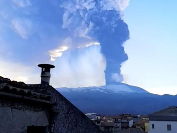 當地時間2月28日,從意大利拍攝的埃特納火山噴發的場景。