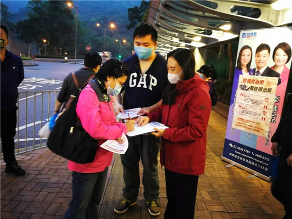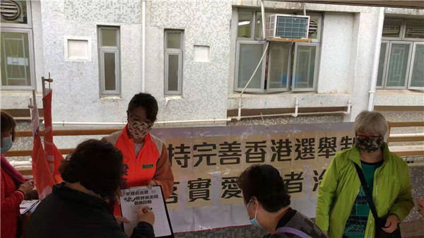 3月6日,大埔西貢景林溫啟明、葛珮帆開展「支持完善香港選舉制度,愛國者治港」簽名。
