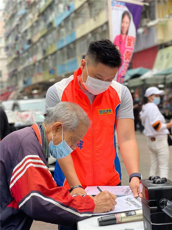 民政事务局局长徐英伟参加立法会议员郑泳舜街站活动,签名支持完善选举制度,落实爱国者治港。