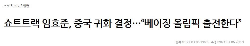 報道援引知情人士的話說,林孝俊可能因受到懲罰等問題無法入選韓國國家隊,在渴望參加冬奧會的情況下,他本人經過深思熟慮最終決定前往中國,目前正在辦理入籍中國的手續。