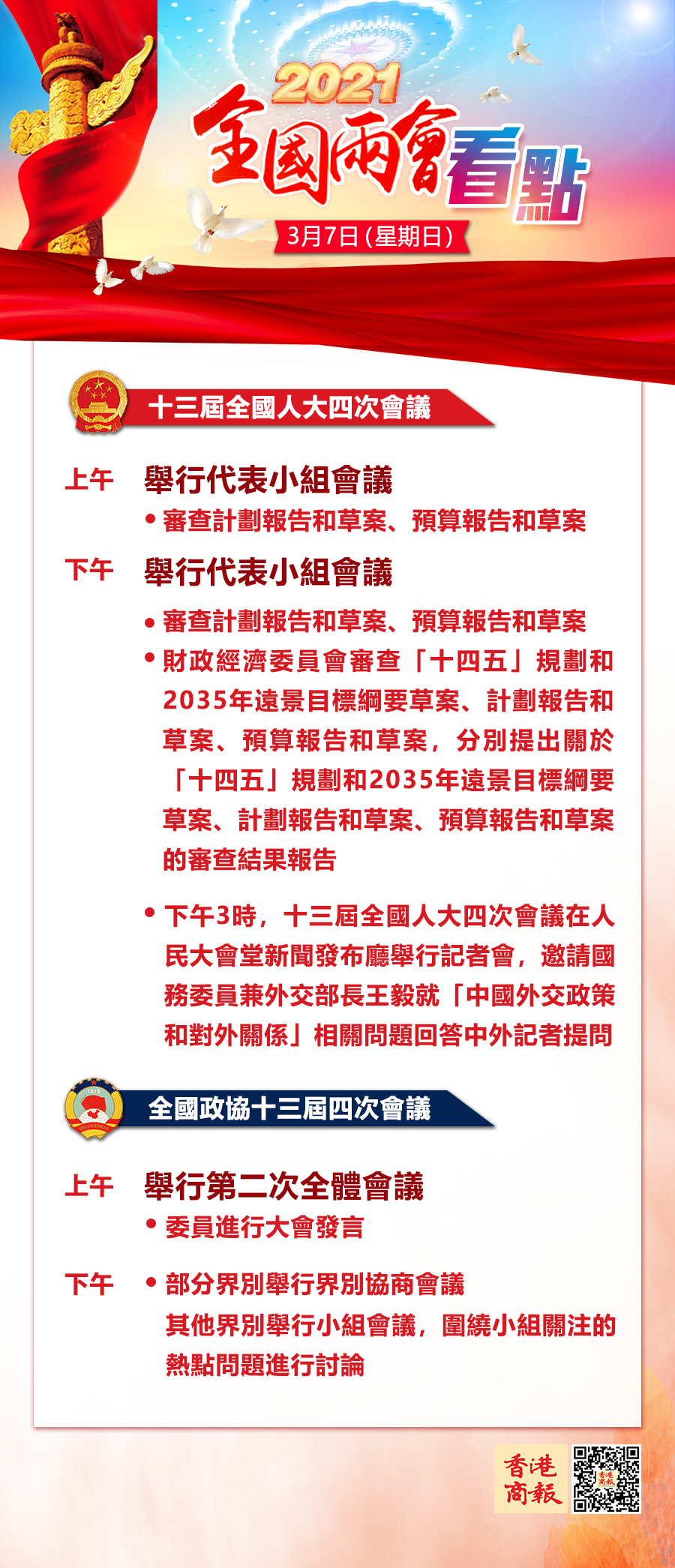 7日,十三屆全國人大四次會議全天舉行代表小組會議,審查計劃報告和草案、預算報告和草案;下午,財政經濟委員會審查「十四五」規劃和2035年遠景目標綱要草案、計劃報告和草案、預算報告和草案,分別提出關於「十四五」規劃和2035年遠景目標綱要草案、計劃報告和草案、預算報告和草案的審查結果報告。