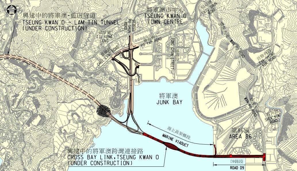 預期于2022年竣工的將軍澳大橋,位於香港新界東南側的將軍澳海灣,是連接將軍澳和藍田隧道的重要跨海通道。該橋主體為一條橫跨將軍澳海灣的海上高架橋,而雙拱鋼橋正是海上高架橋的主橋部分。這一外飄式雙拱鋼橋重約10000噸,跨徑200米,建成後是香港跨度最大的鋼拱橋,將成為香港繼青馬大橋、昂船洲大橋之後又一地標性跨海大橋。