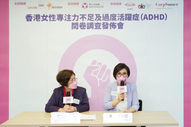 Let's Talk ADHD創辦人霍彩玲及ADHD專家王玉珍公布全港首個探討「香港女性專注力不足及過度活躍症」問卷調查。