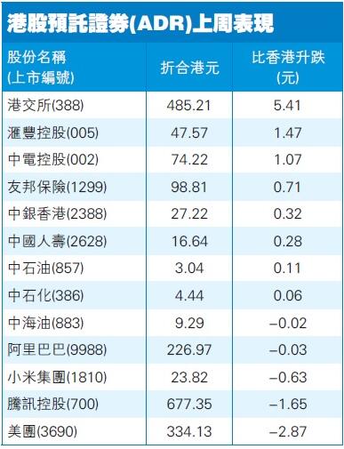 港股ADR指數向上,按比例計算,收報29242點,升144點。豐控股(005)收報47.57元,較港收市升1.47元,升幅3.2%;騰訊(700)收報677.35元,較港收市跌1.65元。