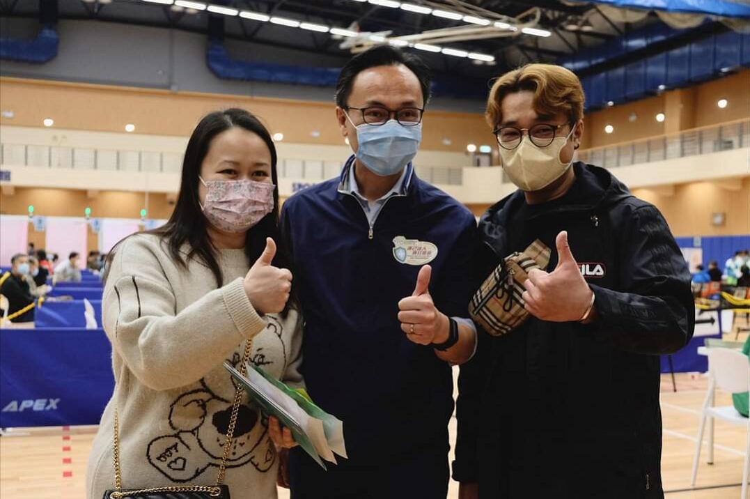 星期天的接種中心都會多見到一家幾口、幾代同堂的市民齊來接種,鄧伯伯身邊的是餅印一樣的孫仔女;羅婆婆由女兒及女婿陪同來接種。他們都希望疫苗能提供保護,讓大家遠離病毒,市民生活能早日回復正常。(圖源:聶德權@FB)