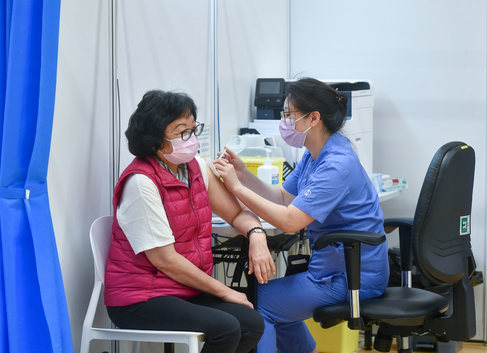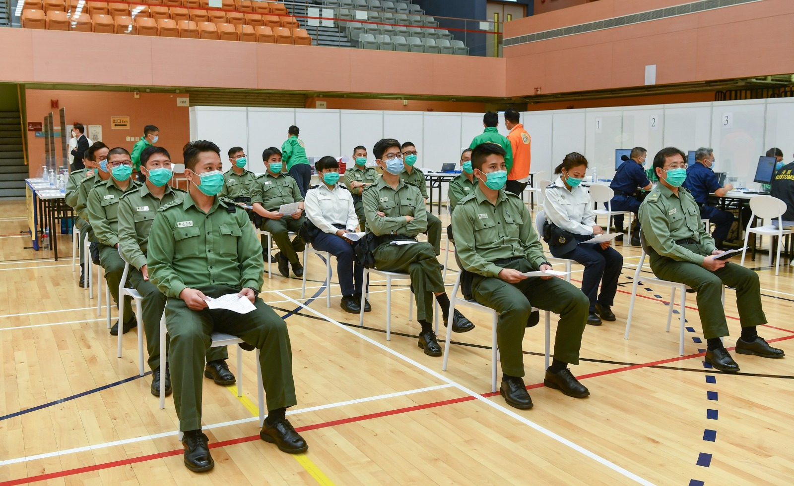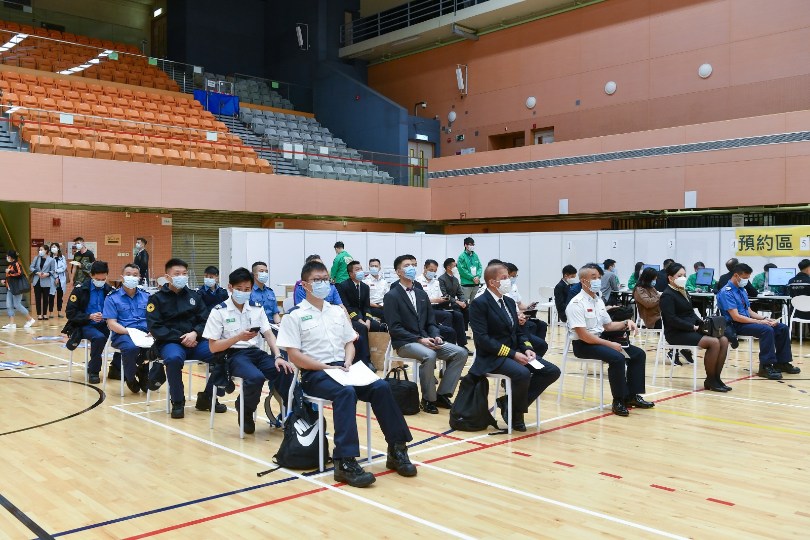 今日(8日)接種疫苗的人士包括醫護人員、空中服務員,以及來自6個紀律部隊的人員。