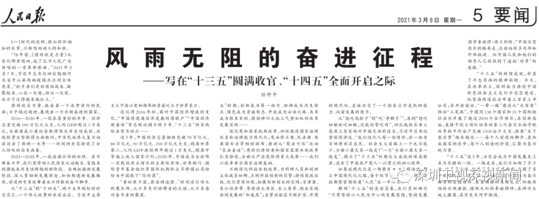2021年3月8日,人民日報以「任仲平」名義發表重磅社論:《風雨無阻的奮進征程》。