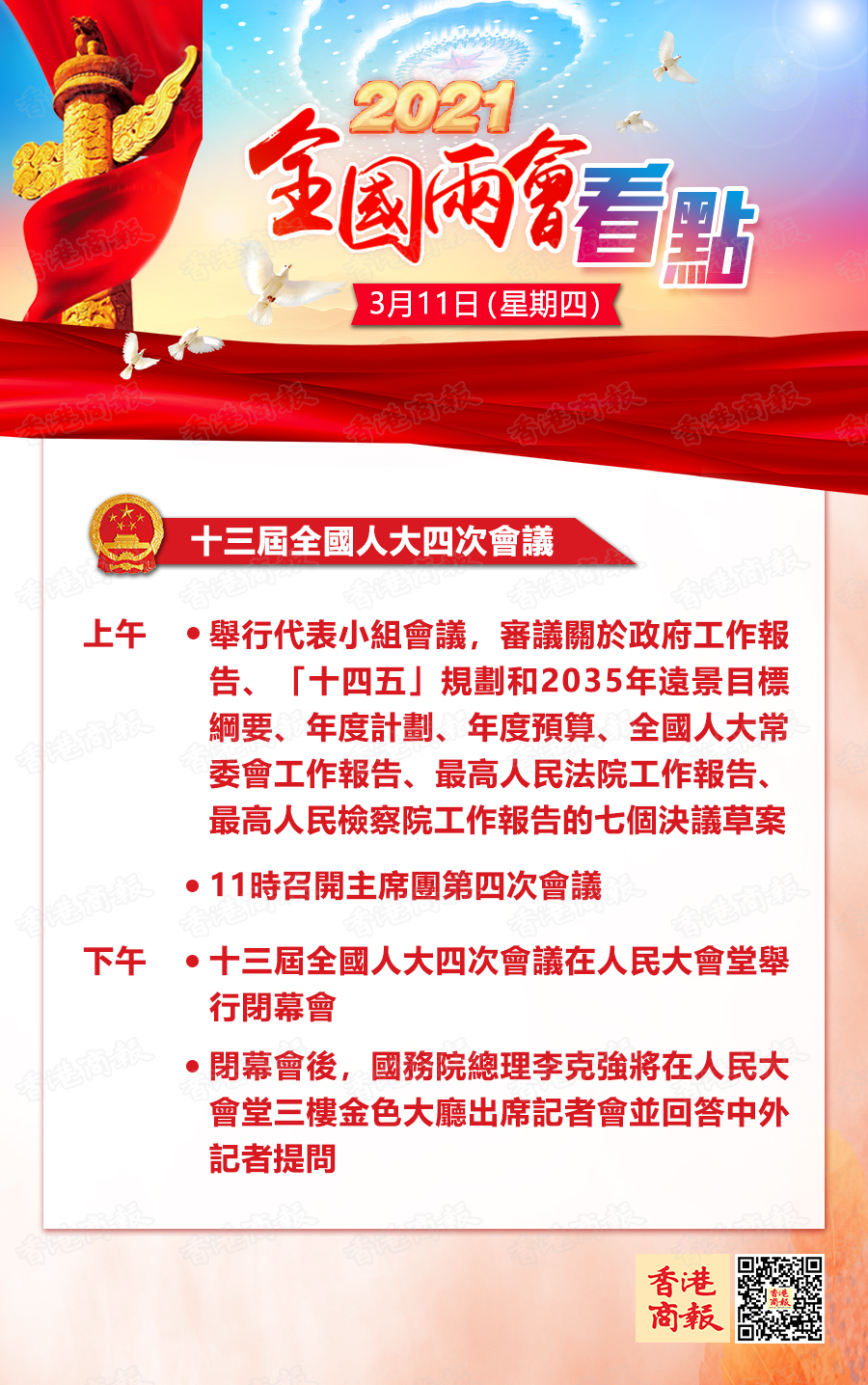 一圖知曉丨3月11日兩會看點:人大會議閉幕 李克強會見中外記者