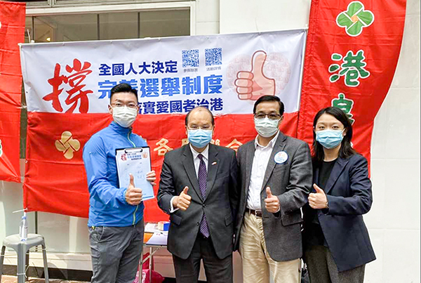 政務司司長張建宗11日親身到街站,簽名支持「完善香港特別行政區選舉制度,落實愛國者治港」的決定,並籲廣大市民支持決定。