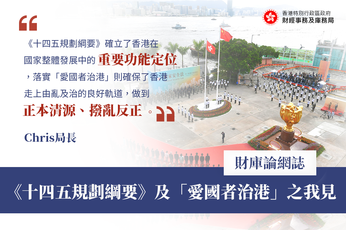 財經事務及庫務局局長許正宇今日發表網誌表示,國家在「十四五」期間將進入新發展階段,除了為推動高質量發展提出新理念及新格局,規劃亦就主要任務定下量化目標。香港的繁榮穩定與國家的發展規劃緊扣相連,這些目標絕對值得香港重點關注。