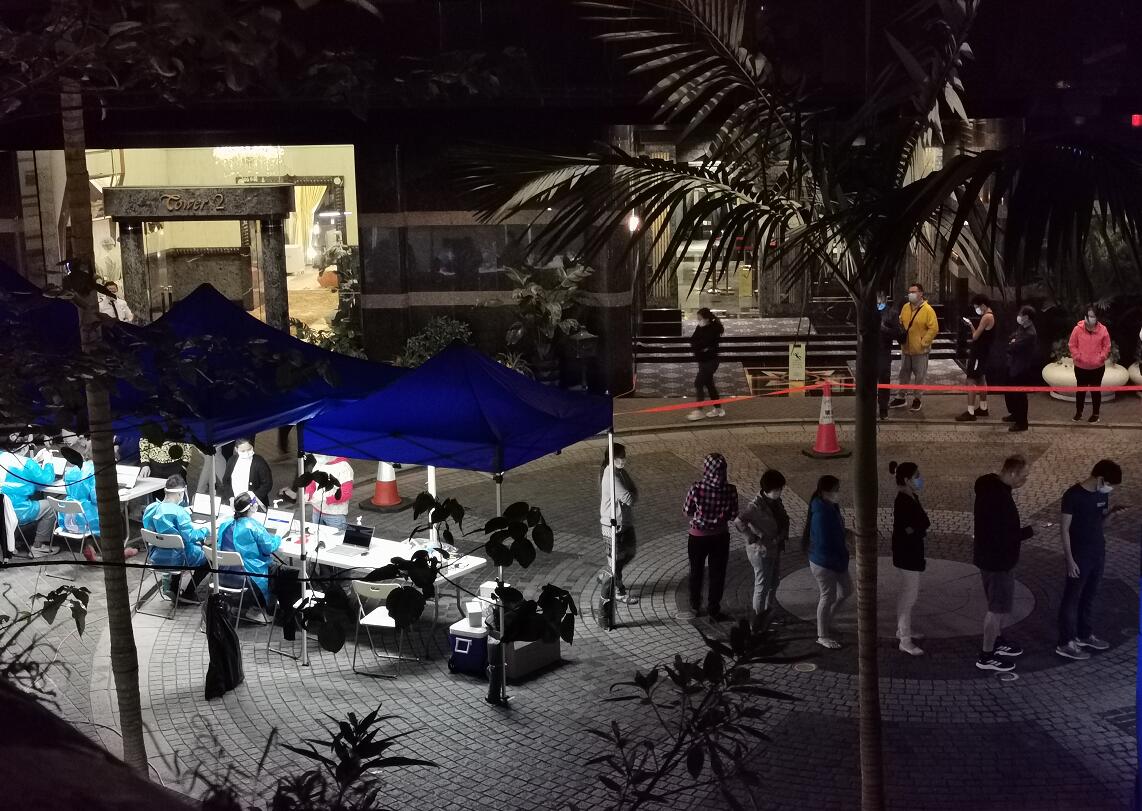 14日晚11时50分左右,帝景園的檢測差不多進入尾聲,現場已經見到沒什麼人排隊了。