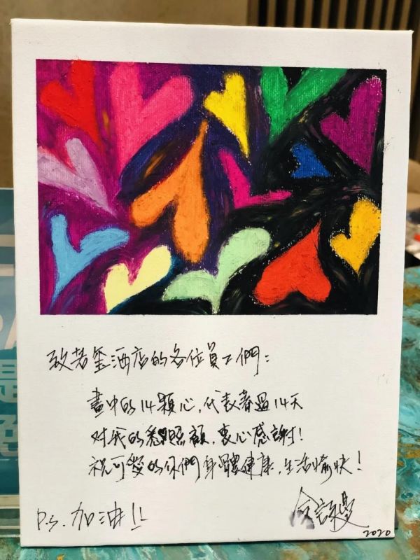 另外,他還在留給酒店的感謝信中寫道「感謝在疫情下(的)付出和貢獻,祝平安、健康、快樂。」