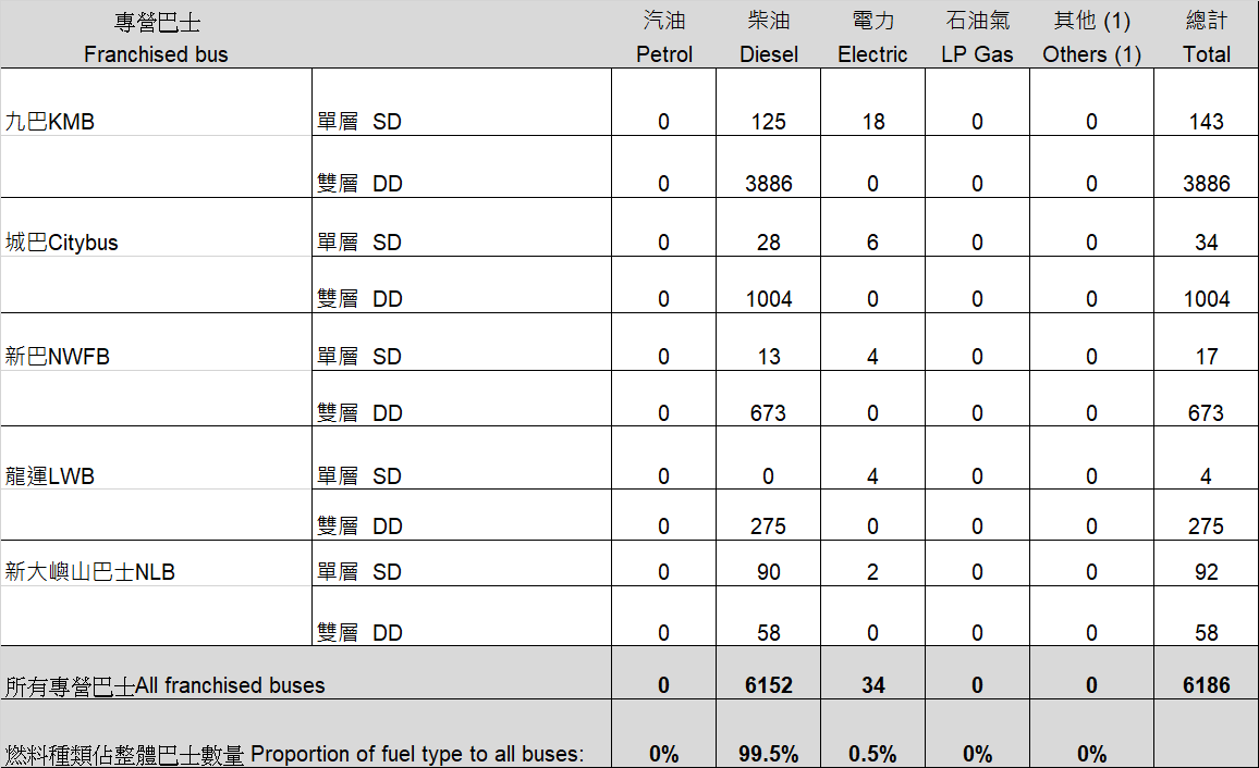 截至2020年11月按燃料種類劃分的巴士登記統計數字。