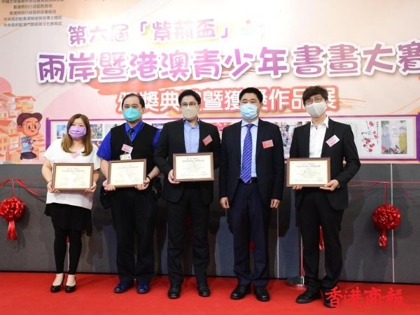 由《紫荊雜誌社》主辦的第六屆紫荊盃兩岸暨港澳青少年書畫大賽頒獎典禮暨獲獎作品展今日(20日)舉行,中聯辦宣傳文體部副部長鄭琳,紫荊雜誌社社長楊勇,全國政協委員、香港藝術發展局成員霍啟剛,全國政協委員、香港大公文匯傳媒集團董事長姜在忠,香港教育局代表李樂華博士,香港教育工作者聯會主席黃錦良,香港蘭亭學會主席,香港藝術發展局視覺藝術組前主席李錦賢,紫荊雜誌社副社長袁建等出席了頒獎典禮。