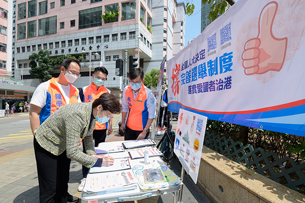 「連線」21日表示,由人大決定通過起一連11日,「連線」發動1320個團體,5360名義工在全港設立多個街站接受市民簽名,不少市民表示,看到香港過去一段時間不斷內耗和停滯不前感到相當痛心,盼望透過今次完善香港選舉制度,落實「愛國者治港」,讓香港重新出發,回到正軌,聚焦社會深層次矛盾,改善民生。