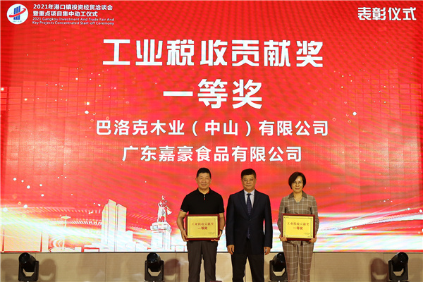 為表彰先進,樹立榜樣,本次活動還對在2020年度為港口鎮經濟發展作出突出貢獻的企業分別授予「工業稅收貢獻獎」「投資建設貢獻獎」「服務業稅收貢獻獎」「商務區集聚發展貢獻獎」「進出口貢獻獎」等榮譽稱號。(記者 黃鳳鳴)
