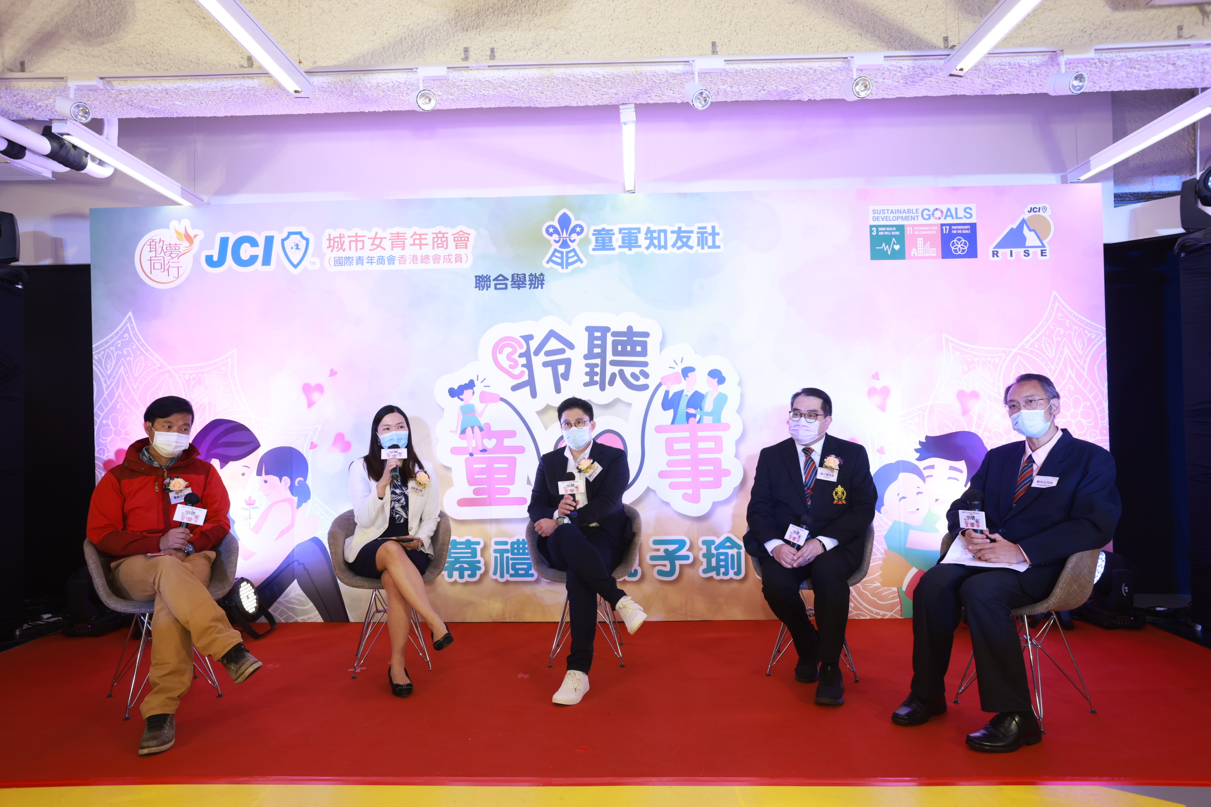 城市女青年商會表示,「聆聽童心事」開幕禮舉行了簡單揭幕儀式,問卷調查發布會則邀請到霍啟剛擔任主禮嘉賓、鄭麗莎擔任活動大使;霍啟剛還與童軍知友社總監徐小龍、督導主任鄭仲文、商會會長梁凱瑩和社工黃鎮昌作為問卷調查嘉賓、眾人並就結果分享意見;鄭麗莎亦與「聆聽童心事」活動籌委會主席梁詠心把印有活動名稱之板塊放在一起,象徵家長應多聆聽子女心聲。