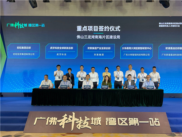 30日,佛山三龍灣南海片區重點項目簽約暨國際科技人才邀約大會在南海三山舉行,150多位重點企業代表參加會議。共有 15個重點招商項目在大會上集中簽約,涵蓋產業總部、園區載體和人才團隊項目,總計投資金額約123億元,所有項目建成總建築面積約135萬平方米,將集聚超過3.5萬名創新人才。其中包括虎牙、歡聚、宏旺、富士康、大華、易簡等知名企業,華潤潤慧科技園、聯東U谷新動能產業加速器等現代產業園區,以及中科院院士、國家高層次人才等優秀人才團隊項目。