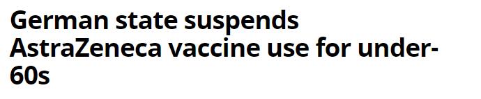 據報道,德國柏林已再次暫停為60歲以下人群接種阿斯利康疫苗。法國藥品安全局(ANSM)近日證實,阿斯利康疫苗存在「罕見」風險,會造成非典型血栓。法國近期有多例接種者出現血栓病症,特別是3月12日至18日造成2人死亡。