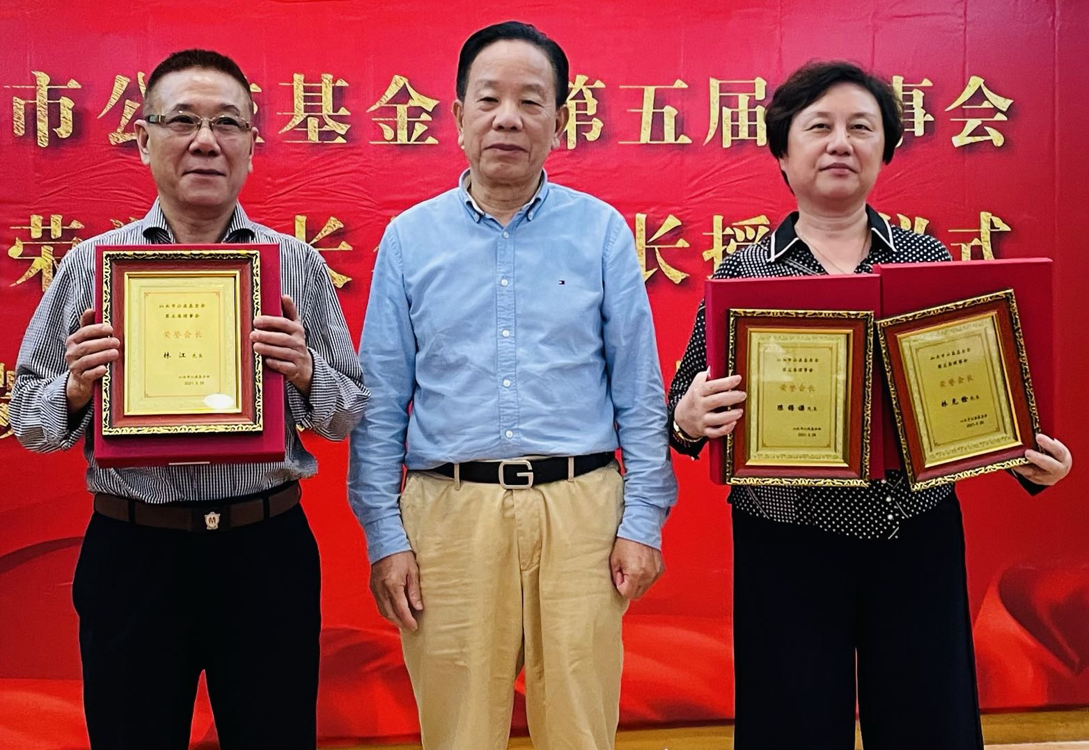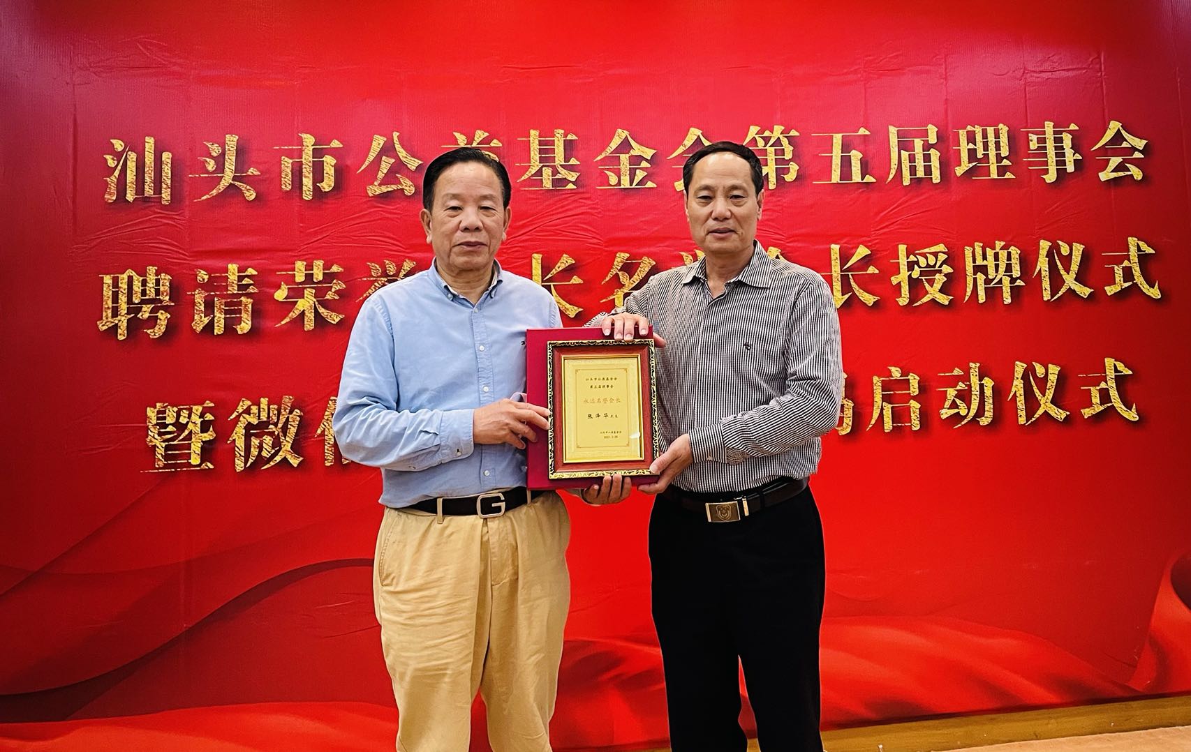 30日下午,汕頭市公益基金會第五屆理事會聘請榮譽會長、名譽會長授牌儀式暨微信公眾號啟動儀式在龍湖賓館舉行,基金會副理事長兼秘書長王少傑主持活動並宣讀聘請名單,汕頭市公益基金會原會長張澤華被聘請為永遠名譽會長,李練深、黃茂強、張章筍、孫志文、石耀忠、陳偉雄、鄭文謙、黃燕生、鄭興明、黃婉茹、黃偉鵬、陳錫謙、林江、林克栓等被聘請為榮譽會長,陳楚鎮、陳朝暉、林娜、陳少敏、紀家潮、王建程、吳燕傑、肖再粦、許凱俊、楊銳輝、江塘順、溫偉東、周朝峰、林挺峰、楊小莉、柯裔明、陳櫻等被聘請為名譽會長,授牌典禮上,永遠名譽會長張澤華、基金會理事長黃民雄為出席活動的榮譽會長、名譽會長頒發牌匾。