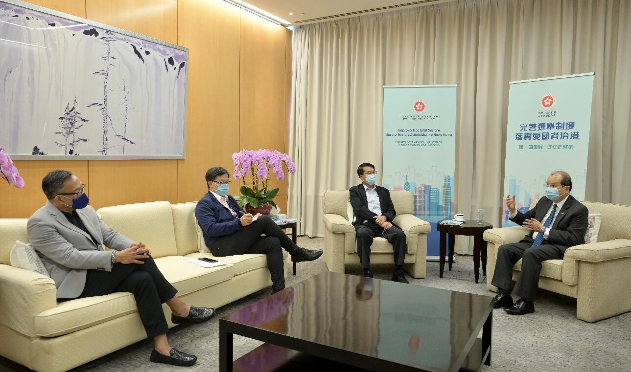 張建宗和行政署長鄭鍾偉與立法會內務委員會主席李慧琼及立法會議員周浩鼎、葛珮帆、柯創盛、張國鈞、梁志祥、黃定光、蔣麗芸、鄭泳舜、陳恒鑌、劉國勳和陳克勤會面