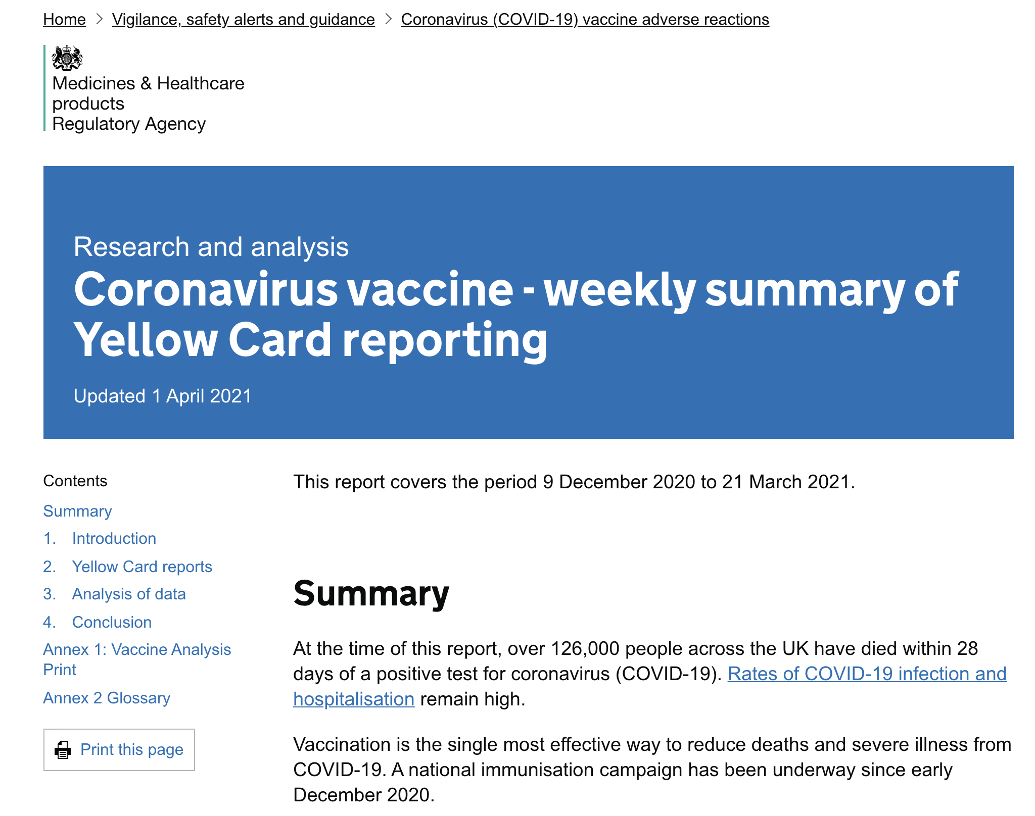 當地時間4月1日,英國衛生部官網更新最新疫情情況,根據當天公布的報告顯示,英國藥物監管機構稱該國已發現30例接種阿斯利康新冠疫苗後的血栓病例。