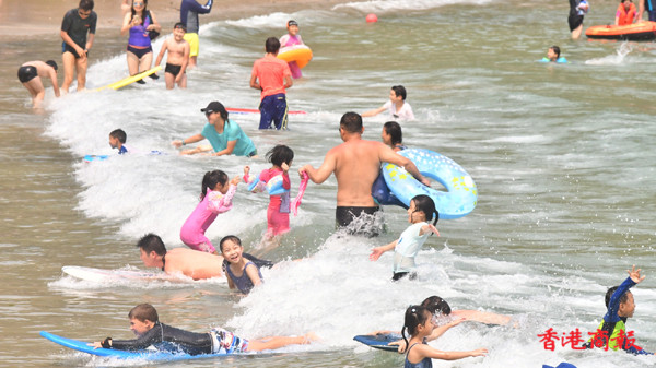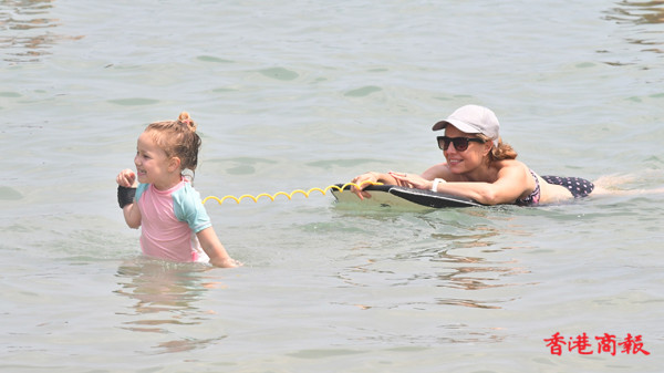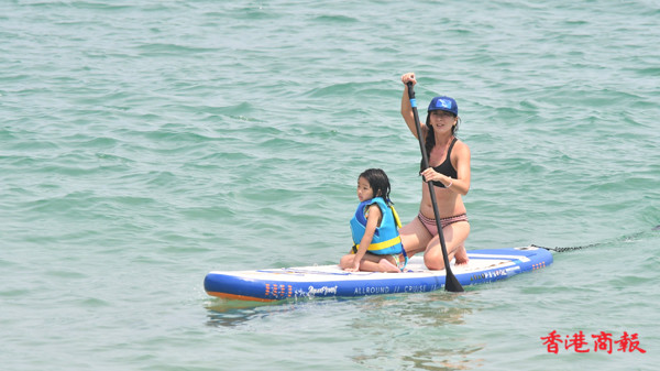 香港新冠肺炎疫情和緩,不少公共設施開放,包括康文署轄下的15個海灘亦在今日(2日)重開,並設有救生員服務,吸引不少一家大小前往消消暑、透透氣。雖然還沒到夏天,在港島大浪灣已有不少市民享受陽光海風,除了游泳人士外,也有不少市民到來滑浪,這個時候的海浪不算大,適合初學者及小朋友玩,嘗試一下踏浪而來的感覺。(記者 馮瀚文攝)