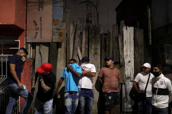 在巴西聖保羅,部分人士違反防疫法,沒有戴上口罩聚集。 路透社