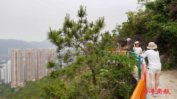 屯門徑彩虹欄杆路段景觀不但開揚,可以遠眺青山、圓頭山及屯門市,高山與城景一覽無遺,因此成為了打卡熱點。(記者 馮俊文攝)