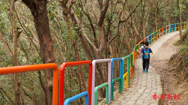 由麥理浩徑終點起步,經麥理浩徑第10段大約步行一個小時,就可到達位於屯門徑的彩虹欄杆。彩虹欄杆因顏色繽紛搶眼,再加上此路段的上落波幅不大,與一般家樂徑同樣有鋪設整齊的石級。是一個老少鹹宜,適合一家大小輕鬆遠足的路線。